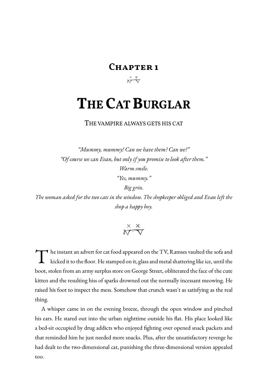 Ramses Niblet III, one such vampire and the world’s one and only literal cat burglar, has found the thrill slowly draining from his pursuit of feline fugitives faster than he can drain their blood. There’s just no challenge in breaking into old grannies’ apartments and stealing away their beloved furballs anymore. That is, until he discovers there’s a new vampire prince ruling the town and he has a cat called Sparkles. Suddenly, sneaking into the most secure building in Undead Briton and doing away with the leader of the worldwide feline conspiracy he’s tried so hard to convince everyone of is his only goal and nothing is going to stop him. Not his clan. Not his friends (and not just because they’re all imaginary), not his slightly gimpy leg, nor the gimp down the street—and certainly not a pesky civil war, dragon, tribe of invading werewolves, mummy searching for her past, pyromaniac who might just be crazier than him, terrible truths or a resurrected vampire lord, all of which seem to be very inconveniently timed.